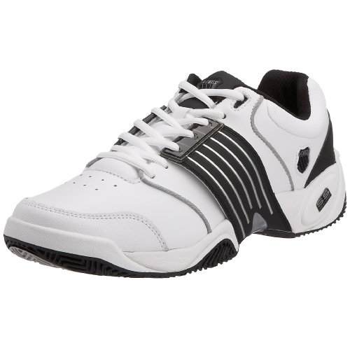 K SWISS Accomplish II Outdoor Mens Tennis ShoesOutsole Durable Aosta II rubber. Forefoot flex grooves. Clay-friendly tread design. Midsole Compression-molded EVA. Shock Spring cushioning technology. Cushion Board construction.Upper Combination leather/synthetic leather or leather/mesh. Lateral support wrap provides extra lateral stability for the foot.K SWISS Accomplish II Outdoor Mens Tennis Shoes